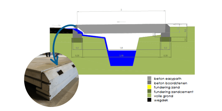 Le Pontopath® est idéal pour des applications telles que les routes à faible circulation souvent inondées ou pour couvrir les fossés. Ce système draine efficacement les eaux pluviales sous la structure et nécessite un entretien minimal. Grâce à sa couche supérieure de qualité supérieure, il offre également une surface de conduite sûre et confortable.