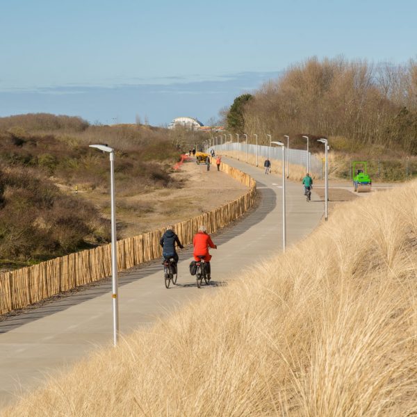 Éléments préfabriqués pour pistes cyclables et piétonnes en béton de haute qualité, à stabilité dimensionnelle garantie. Fabriqués monolithiquement en béton autoplaçant, ils répondent aux normes NBN EN 206-1 : C55/67 (classe environnementale : EE4, EA3 ; classe d'exposition : XA3, XC4, XF4). Le contrôle qualité du processus de fabrication est attesté par un certificat KOMO (BRL 2813). La charge maximale par essieu est de 100 kN (épaisseur 14 cm) ou 150 kN (épaisseur 20 cm).