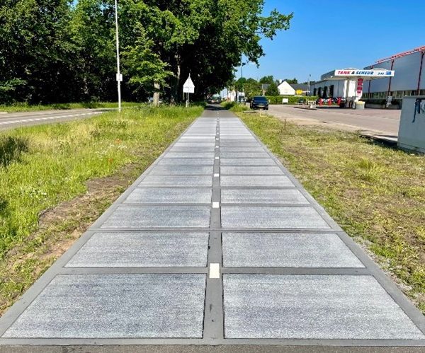 Les éléments de piste cyclable préfabriqués en béton Easypath® peuvent être dotés d'une couche supérieure équipée de capteurs solaires. L'énergie produite par la piste cyclable servira à alimenter la piste elle-même, les bâtiments environnants, les habitations, les espaces publics, l'éclairage public et la signalisation. Cette couche supérieure, équipée de capteurs solaires, est traitée de manière à offrir une adhérence suffisante aux cyclistes et/ou aux piétons, même par temps humide.