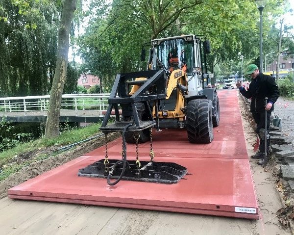 Pour les travaux sur les lignes électriques sous-jacentes, les éléments peuvent être retirés sans dommage ni démolition, puis remis en place une fois les travaux terminés.